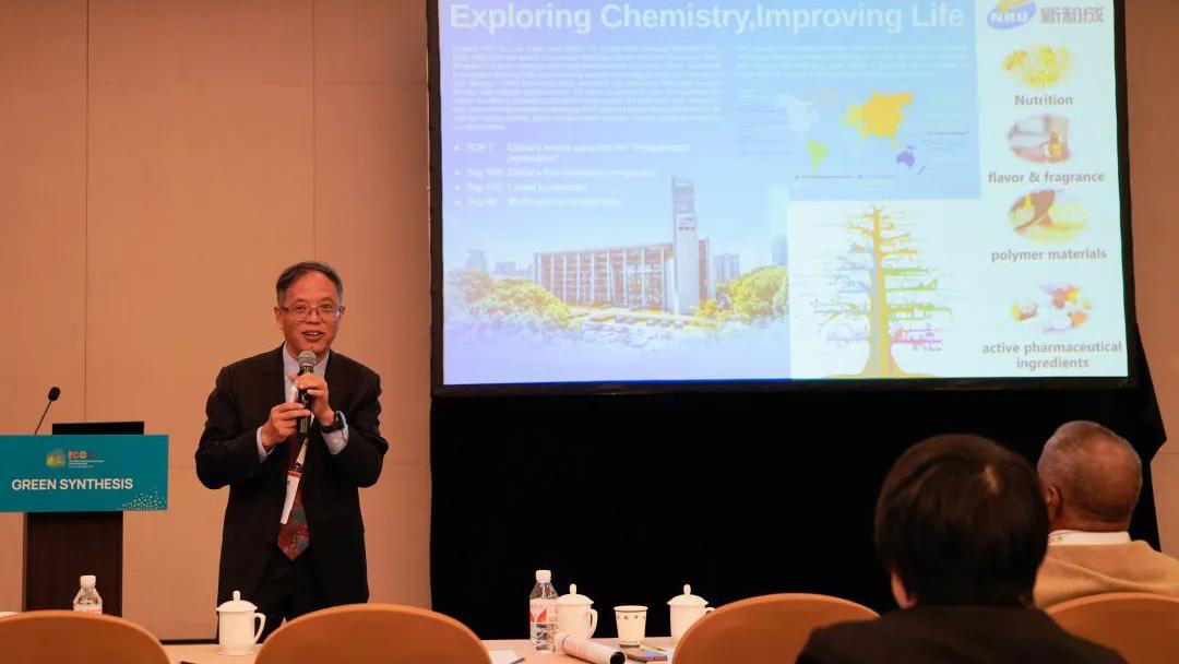 10月19日,公司研究院名譽(yù)院長(cháng)李浩然老師向大會(huì )介紹新和成業(yè)務(wù)板塊、發(fā)展概況及在綠色化學(xué)方面的實(shí)踐,讓更多化學(xué)工作者了解新和成。同時(shí)他發(fā)表了學(xué)術(shù)報告,分享了他在綠色化學(xué)領(lǐng)域的研究進(jìn)展,為過(guò)渡金屬無(wú)催化的綠色氧化反應提供了新思路。