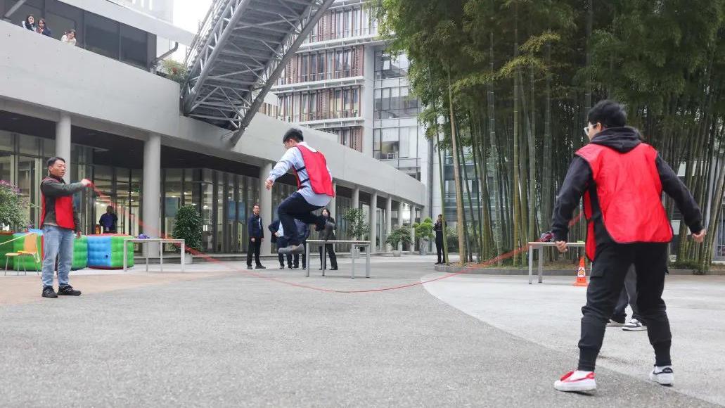 2分鐘內,搖繩與跳繩默契配合,每一次成功的跳躍都是對團隊凝聚力的最佳詮釋?zhuān)奂病澳_”快,接續不斷,失誤重來(lái),斗志不減,青春活力與不屈不撓精神熠熠生輝。
